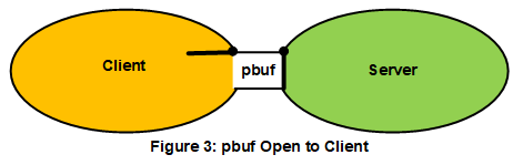 In a tunnel portal, a pmsg sent by a client sticks to the server until the portal is closed by either end. The data block is referred to as the portal buffer, pbuf. As shown below in Figure 3,